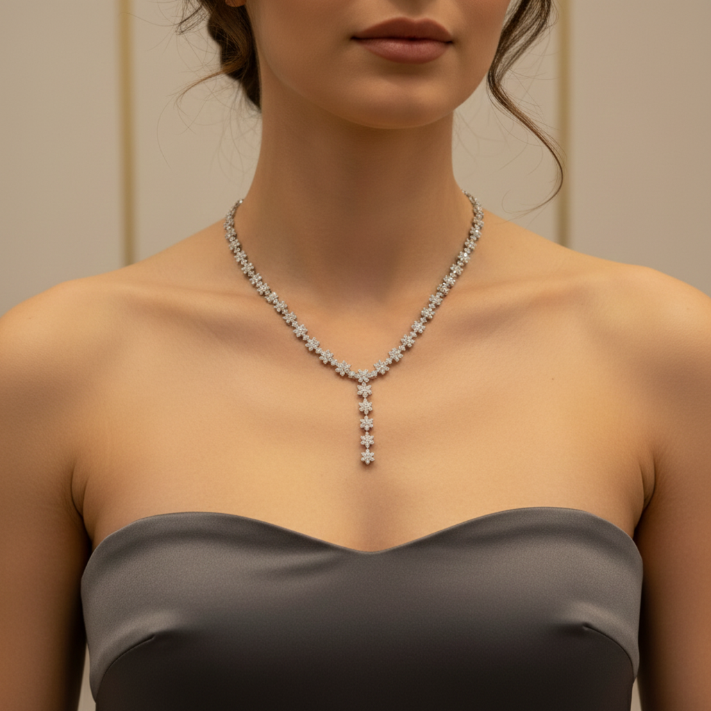 قلادة على شكل حرف Y تتميز بزخارف عنقودية رائعة من الماس المصنّع في المختبر مع قلادة متدلية