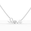 This 0.05 CT love inscription diamond pendant features a sculpted script motif engineered to create continuous metal flow across the full length of the design. The lettering forms a unified structure spelling “love,” with each curve and transition dimensioned to maintain rigidity while providing a fluid, ribbon-like appearance. The polished metal surfaces enhance reflectivity and support the visual movement of the inscription.