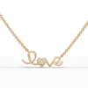 Attached to the script is a compact heart element set with round brilliant stones arranged in a calibrated micro-prong layout. These stones are positioned to ensure consistent elevation, optimized light entry, and secure retention. The diamond-accented heart provides a controlled brilliance focal point that contrasts with the smooth, reflective lettering. The pendant is crafted in 18k gold, selected for its warm tone, structural stability, and compatibility with fine script-based designs.