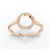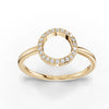 This 0.11 CT open circle pavé lab-grown diamond ring features a circular centerpiece positioned along the top section of an 18K gold band. The open circle is formed from a continuous rounded frame with no center stone, creating a clean, uninterrupted geometric outline.