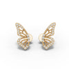 These 0.15 CT butterfly lattice diamond earrings are engineered using a multi-panel wing framework modeled after natural butterfly symmetry. Each wing incorporates an internal lattice design composed of intersecting gold filaments that generate a stable, lightweight structure while maintaining defined geometric boundaries. This open-frame architecture reduces overall mass and increases light transmission through the wings.