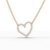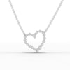 This exquisite pendant showcases a heart design entirely composed of sparkling gemstones, each meticulously set to form a continuous, glittering outline. The open heart shape is delicately crafted with a series of round, brilliant cut stones, creating a luminous and eye catching effect. The stones are set in a minimalist style, allowing their natural brilliance to shine through and capture light from every angle. The heart's asymmetrical form adds a contemporary twist to the classic symbol of love, giving it a unique and modern appeal. Suspended from a fine chain, this pendant embodies a blend of elegance and simplicity, making it a versatile accessory perfect for adding a touch of sparkle to any outfit.