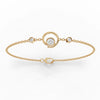 Flanking the center stone, two smaller round lab-grown diamonds are evenly spaced along the chain, adding gentle radiance and visual harmony. Each diamond is selected for clarity, symmetry, and consistent light performance, ensuring a refined sparkle that complements the bracelet’s minimalist design. The station-style layout allows each diamond to shine individually while maintaining a lightweight and graceful feel.