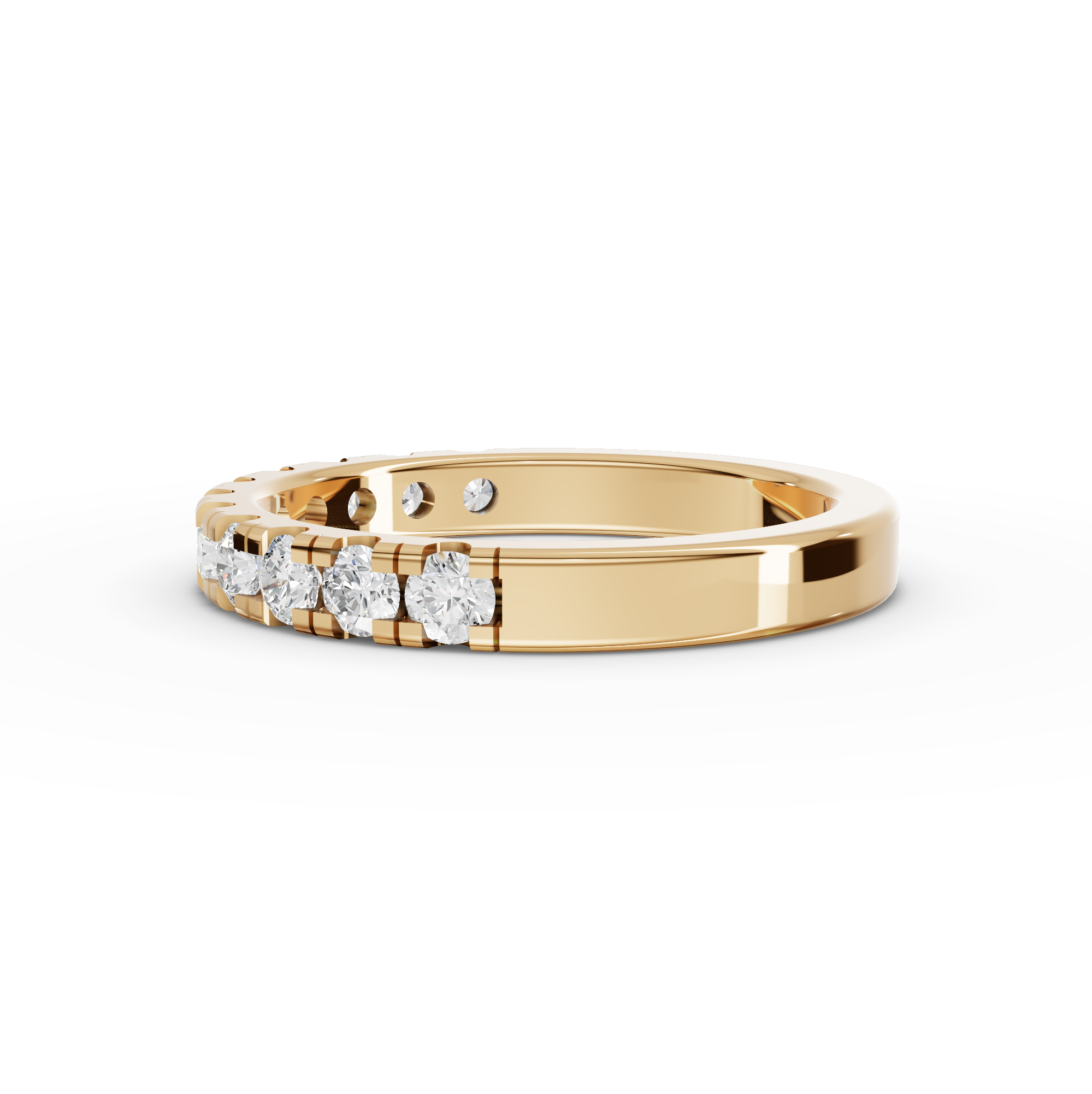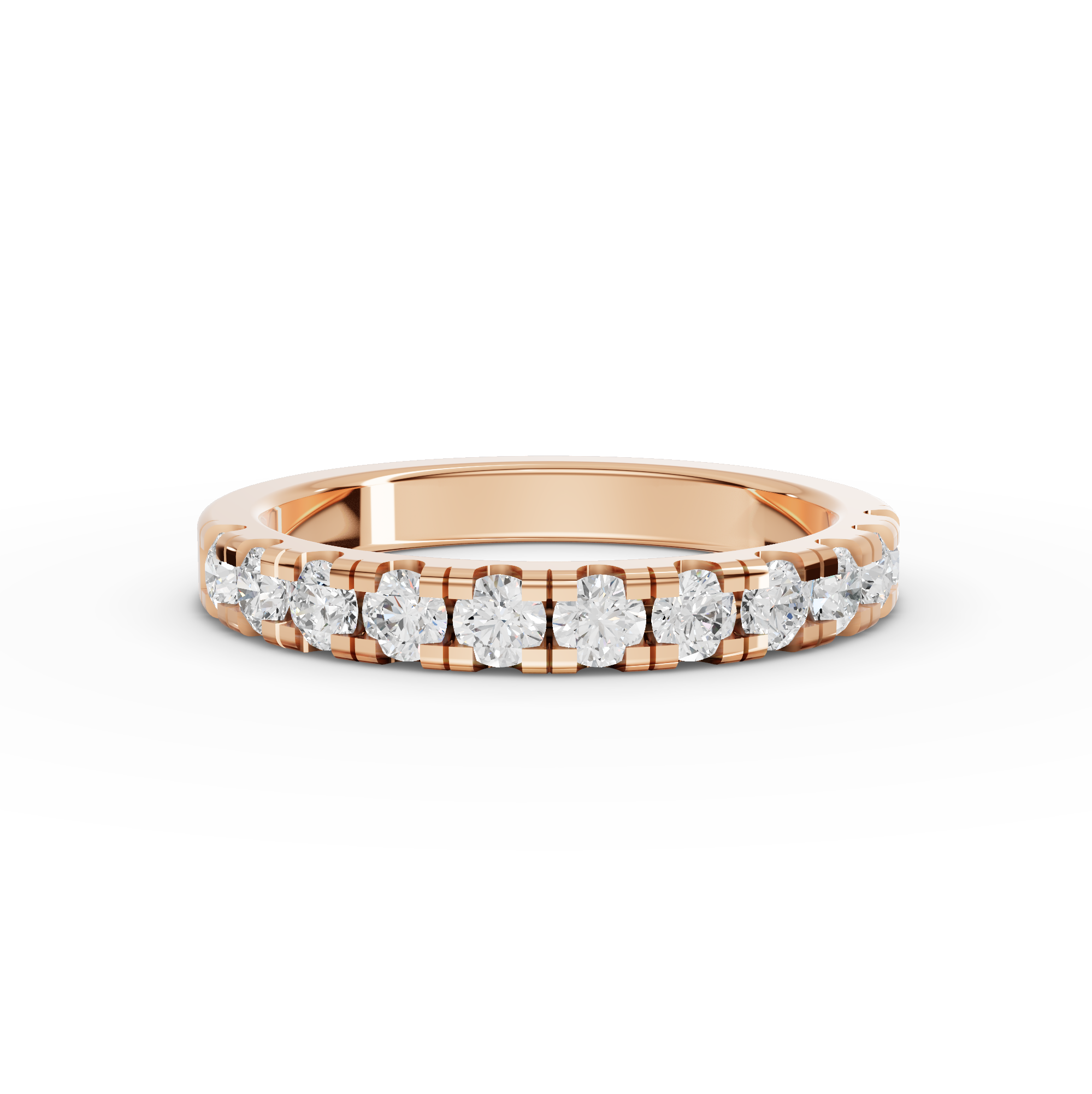 Celebrate your love with this stunning half eternity wedding band featuring 0.65 carats of brilliant round lab diamonds. Each stone is expertly channel set in a secure, seamless design that showcases the diamonds' radiance while providing everyday durability. Lab diamonds offer the same optical and physical properties as mined diamonds at a more accessible price point, making this band an intelligent choice for the modern couple. The half eternity setting allows comfortable stacking with your engagement ring while maintaining an elegant, timeless aesthetic. Perfect for marking a milestone or worn as a standalone statement piece, this band combines sophistication with practical elegance. Crafted to last a lifetime, it's a meaningful investment in your most cherished moments.