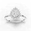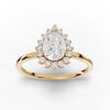 The band features a refined, low-mass profile designed for balanced weight distribution and comfortable long-term wear. Each round accent stone in the halo is positioned with optimized spacing to create symmetrical brilliance across the ring’s silhouette. The pear tip protection and prong structure are reinforced to secure the elongated shape of the center stone while minimizing visual obstruction.
