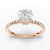 This stunning ring showcases a brilliant 0.75 carat round diamond at its center, elegantly set in a classic prong setting to maximize its sparkle. The band is meticulously adorned with a series of smaller diamonds, creating a seamless cascade of light that enhances the central gem's radiance. This ring's refined design and exquisite craftsmanship embody timeless sophistication and grace, making it an exquisite symbol of eternal love.