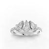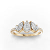 Open galleries beneath the pear-shaped center stone and marquise side stones allow controlled light entry, supporting consistent optical behavior across the mixed shapes. The underside of the band remains smooth to provide structural stability and wearing comfort.