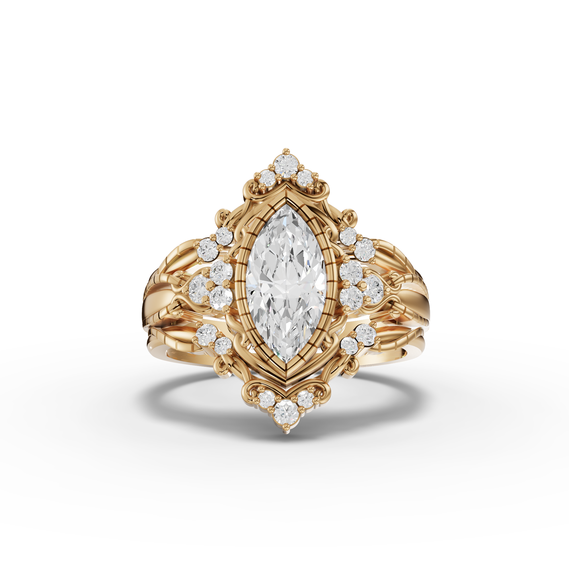 Elevate your love story with this stunning 1.23 carat marquise-cut engagement ring, where timeless elegance meets modern sophistication. The elongated marquise diamond is cradled in a luminous halo of accent stones that amplify its brilliance and create a captivating frame. Paired with a vintage-inspired band, this ring combines classic charm with contemporary design, making it a truly distinctive choice for your special moment. Perfect for those who appreciate refined craftsmanship and distinctive style.
