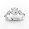Positioned on each side, the secondary diamonds are aligned to create a graduated brilliance pattern, guiding the eye toward the central stone. Each side diamond is mounted in a micro-engineered prong structure optimized for tip protection and facet symmetry.