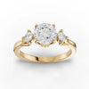 This 1.23CT round diamond three-stone ring is engineered with a multi-element architecture centered around a 1CT round brilliant diamond, flanked by two precision-cut side stones. The tri-stone configuration is modeled to enhance optical balance, distributing brilliance across the horizontal axis for uniform light performance from edge to edge.