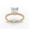 This 1.29 CT princess lab-grown diamond ring is constructed with a centrally positioned princess-cut diamond weighing 1.00 CT. The square outline of the princess shape is aligned along the band axis to maintain straight-edge symmetry and proportional balance when viewed from the top. The center stone is secured using a prong setting that elevates the diamond while allowing exposure across the crown and pavilion for controlled light interaction.