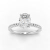 All diamonds used in this ring are lab-grown and graded according to standardized color, clarity, and cut parameters. The combined total carat weight of 1.54 CT distributes visual weight evenly between the center stone and band-set diamonds without interrupting the ring’s profile. The oval center stone orientation supports finger-length alignment when viewed from the top.