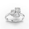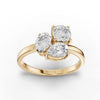 This configuration supports a three-stone arrangement combining oval, cushion, and pear-shaped lab-grown diamonds in a structured, balanced layout.