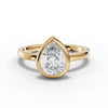 This elegant solitaire ring features a stunning 1.5 carat pear shaped diamond, beautifully set in a sleek bezel setting. The unique teardrop shape of the diamond adds a touch of sophistication and grace, while the smooth, polished band enhances the stone's natural brilliance. The setting elevates the diamond slightly, allowing it to catch the light from all angles and maximize its sparkle. This ring, with its modern simplicity and timeless elegance, is a perfect choice for those who appreciate refined beauty and classic design.