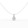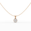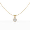 The round center diamond features a symmetrical facet structure designed for optimal light performance. The halo accent diamonds are meticulously set to reflect light from multiple angles, amplifying brilliance while adding depth and dimension to the pendant. Together, the center stone and halo create a balanced composition that blends classic design with contemporary refinement.