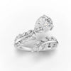 This 1.85CT pear marquise diamond ring is engineered with a multi-stone architecture centered around a 1.5CT pear-cut diamond. The elongated teardrop geometry of the center stone is optimized for directional brilliance, producing high-intensity light return through its pointed apex and rounded base. The prong assembly is calibrated to stabilize the pear’s asymmetrical shape, maintaining forward-facing orientation and consistent elevation during wear.