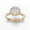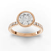 This radiant ring features a mesmerizing 1.90 carat round diamond at its center, elegantly set in a bezel setting that highlights its brilliance. The band is adorned with a continuous row of sparkling diamonds, adding a touch of glamour and enhancing the ring's overall radiance. The sleek design and meticulous detailing make this ring an exquisite choice for those who appreciate a blend of modern sophistication and timeless elegance.