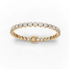This elegant bracelet features a continuous line of perfectly round diamonds, each meticulously set in a warm gold setting that enhances their inherent brilliance. The diamonds are uniformly aligned, creating a seamless and radiant stream of sparkle that gracefully adorns the wrist. The intricate prong settings are designed to maximize the light reflection, ensuring each diamond shines with exceptional fire. The secure clasp is both stylish and functional, blending effortlessly with the bracelet's refined design. This piece is the epitome of classic sophistication, making it a timeless addition to any jewelry collection.