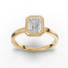 This classic solitaire ring features a stunning 1 carat emerald cut diamond as its centerpiece, set in a sleek bezel setting. The emerald cut diamond's clean lines and rectangular facets create a striking and sophisticated look. The polished band, simple yet elegant, complements the central stone perfectly, allowing its brilliance to shine through. With its timeless design and understated elegance, this ring is an ideal choice for those who appreciate the beauty of simplicity and the allure of classic craftsmanship.