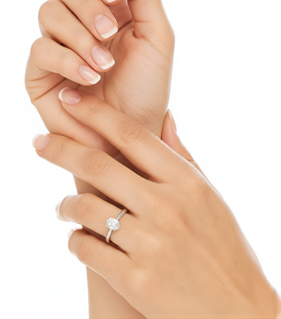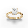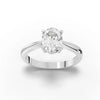 Presenting an exquisite ring that epitomizes elegance and sophistication. This ring features a radiant oval cut diamond, meticulously set in a four prong setting, allowing maximum light to pass through and reflect its brilliance. The band is sleek and gracefully tapered, complementing the central gem's elongated silhouette. Each angle reveals the careful craftsmanship, with the diamond perched perfectly to catch the eye. This ring is a timeless piece, designed for those who appreciate the blend of classic design and modern allure.