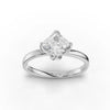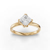 This 1.00 CT princess cut solitaire lab-grown diamond ring features a square center stone set in a four-prong arrangement designed to maintain stability while keeping the stone’s upper surface visible. The prongs are shaped to follow the contour of the princess cut, holding the diamond at its corners to secure the structure without obstructing the facet pattern. Each prong is formed with a slight curvature that resembles a petal-like configuration, contributing to the overall geometric alignment of the setting.