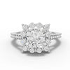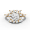 This stunning engagement ring features a 1.5ct cushion cut center diamond, surrounded by 32 round side stones, creating a dazzling halo effect. With a total diamond weight of 2.06ct, each stone is IGI or IDT certified with D–F color and VVS–VS clarity. Crafted in 18KT gold—available in white, yellow, or rose—this ring is a perfect blend of timeless elegance and contemporary design, making it a captivating symbol of love and commitment.