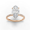 This 2.29CT marquise diamond pavé ring is engineered around a 2.00CT marquise-cut center stone, selected for its elongated geometry and high-efficiency faceting optimized for maximum light return. The marquise cut’s tapered tips and curved symmetry produce a distinctive brilliance pattern that visually lengthens the finger while delivering a dynamic scintillation field.