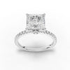 All diamonds used in this ring are lab-grown and graded according to standardized parameters for color, clarity, and cut. The total carat weight of 2.29 CT is distributed between the center stone and band-set accent diamonds without interrupting the ring’s geometry. The princess-cut orientation maintains parallel alignment with the band edges, supporting a defined top-view structure.