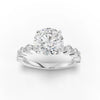 This captivating solitaire engagement ring features a stunning 2 carat round diamond at its center, held securely in an elegant prong setting that maximizes its brilliance. The band is adorned with a series of meticulously set round diamonds, creating a dazzling pavé effect that sparkles from every angle. Each accent diamond is individually bezel set, adding a touch of sophistication and ensuring a seamless flow of light. The overall design combines classic simplicity with contemporary elegance, making this ring a perfect embodiment of timeless beauty and an exquisite symbol of your enduring love.