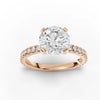 This 2.43CT round diamond accented ring is engineered around a 2.00CT round brilliant center stone secured within a precision-calibrated prong system. The elevated mount is designed to maximize crown and pavilion exposure, enabling multidirectional light intake and delivering a high-intensity brilliance field across the full face of the diamond.