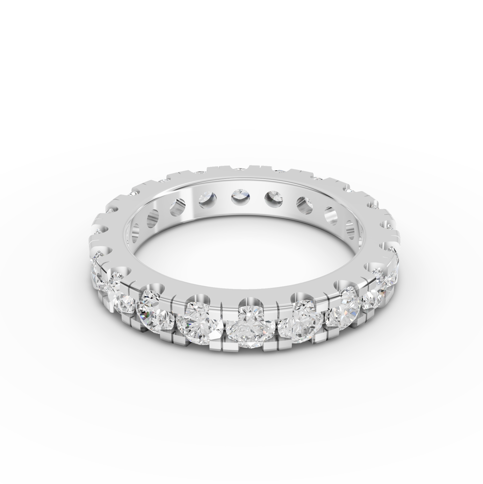 Timeless elegance meets contemporary design in this stunning eternity ring. Featuring 2.57 carats of brilliant round diamonds set in a sleek minimalist bar configuration, this piece celebrates understated luxury. The continuous diamond setting symbolizes eternal love and commitment, while the clean lines and modern aesthetic make it perfect for everyday wear or as a meaningful milestone gift. Crafted with precision to showcase each diamond's natural brilliance, this ring combines classic sophistication with contemporary style.
