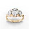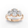 This configuration supports a three-stone engagement ring design featuring matching oval lab-grown diamonds with aligned proportions and consistent structural height.
