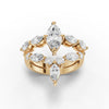 This exquisite dual band ring features a striking marquise cut center stone, elegantly framed by a cascade of round and marquise side stones that sparkle with every movement. The unique split band design adds depth and dimension, creating a bold yet graceful statement piece. Crafted with attention to detail, the setting highlights the brilliance of each stone, making this ring perfect for someone who desires a blend of timeless elegance and modern flair. Whether used as an engagement ring or a stunning anniversary piece, this ring is a symbol of love and commitment that stands out.