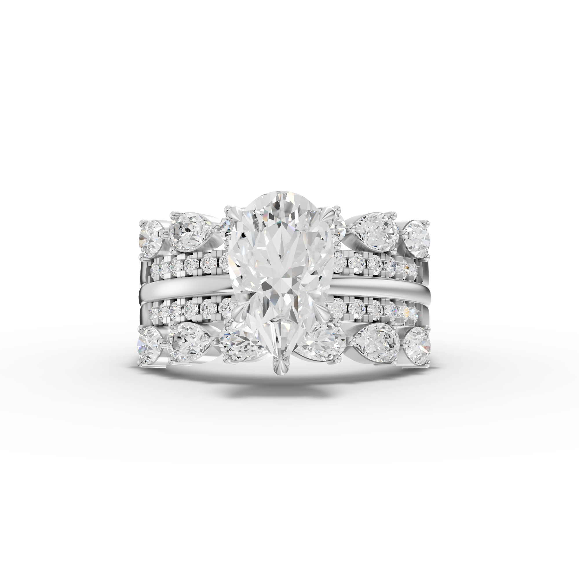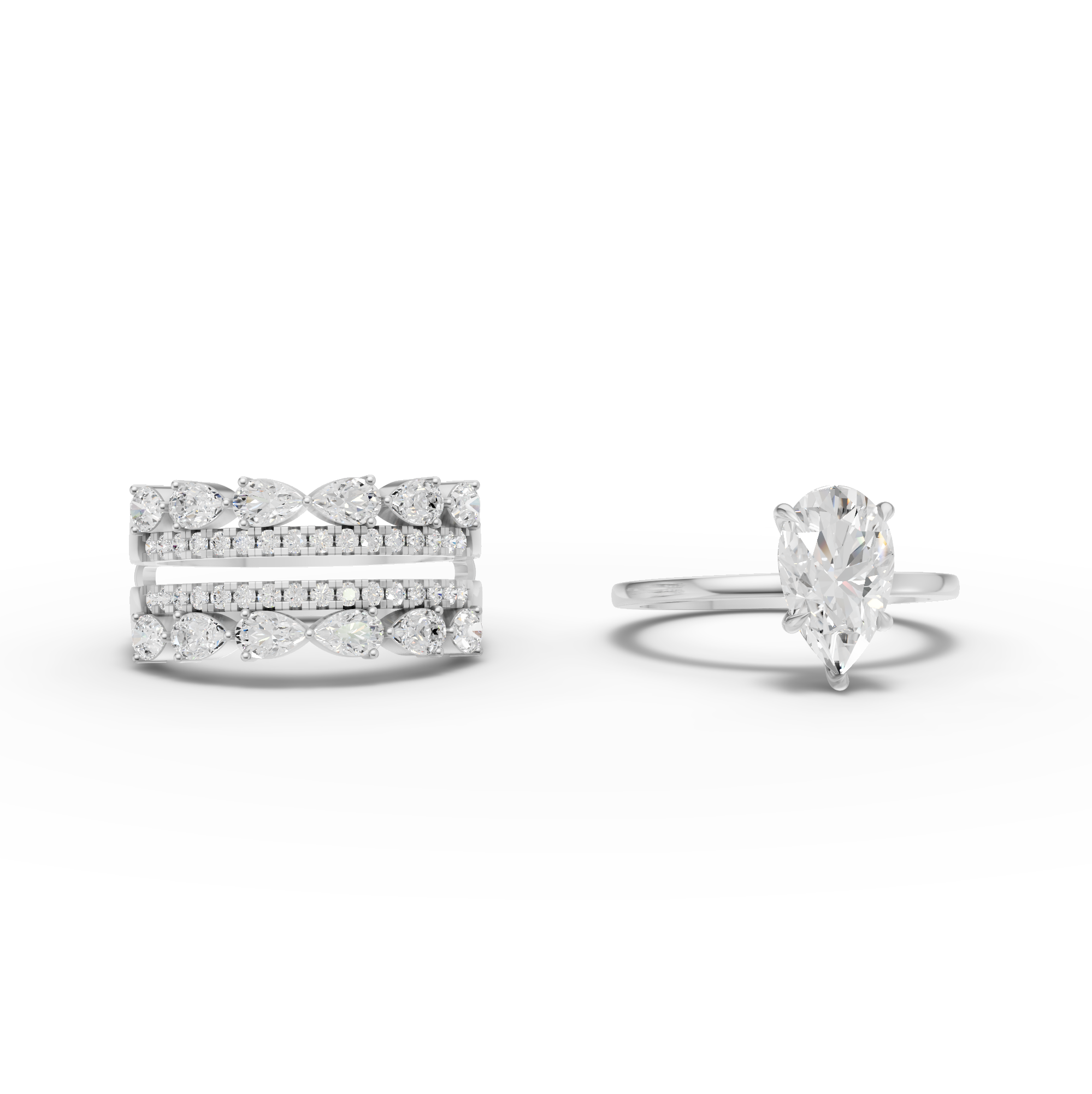 2.87 Ct Pear Diamond Engagement Ring with Triple Row Pavé Band Design