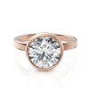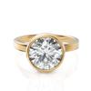 This exquisite solitaire ring features an awe inspiring 3.25 carat round diamond, elegantly embraced by an 18k gold bezel setting. The setting accentuates the diamond's brilliance, allowing light to permeate and reflect with unparalleled radiance. The rich 18k gold band, with its smooth and polished finish, complements the diamond's dazzling sparkle, adding a touch of opulence and sophistication. This ring epitomizes timeless elegance, seamlessly blending classic simplicity with modern refinement, making it an exquisite symbol of enduring love and refined taste.