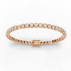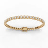 This refined bracelet features a row of scintillating round diamonds, each elegantly encased in a delicate gold bezel setting. The seamless design highlights the brilliance of each diamond, creating a continuous band of radiant sparkle that gracefully wraps around the wrist. The intricate clasp is both secure and stylish, ensuring the bracelet stays in place while adding a touch of sophistication. The meticulously crafted settings enhance the diamonds' natural beauty, making this bracelet a perfect blend of modern elegance and timeless charm. Ideal for any occasion, this piece will add a touch of glamour to any ensemble.