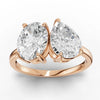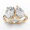 This exquisite two stone engagement ring combines elegance and unique design. It features a stunning 1.5 carat oval cut diamond paired with a 1.5 carat pear shaped diamond, set side by side in a polished gold band. The refined band enhances the natural beauty and brilliance of the diamonds, making them the focal point. The oval diamond exudes a modern sophistication, while the pear shaped diamond adds a touch of timeless grace. Together, they create a captivating interplay of shapes and light, resulting in a ring that is both contemporary and classic, perfect for those who appreciate artistry and individuality in their jewelry.