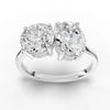 This captivating two stone engagement ring showcases a stunning 1.5 carat round cut diamond alongside a 1.5 carat oval cut diamond. These two magnificent stones are set side by side in a sleek and polished gold band, creating a perfect balance of classic and contemporary elegance. The round diamond exudes timeless charm, while the oval diamond adds a touch of modern sophistication. The refined band enhances the brilliance of the diamonds, making this ring a dazzling symbol of love and commitment, perfect for those who appreciate exquisite craftsmanship and unique design.