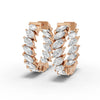 These 2.85 CT marquise lab-grown diamond hoop earrings are constructed with a continuous hoop structure set with elongated marquise cut diamonds arranged in a sequential layout. Each marquise diamond is positioned to follow the curvature of the hoop while maintaining consistent orientation and spacing. The pointed ends of each stone align along the hoop path to preserve uniform geometry and controlled surface coverage.