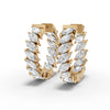 Elongated marquise cut lab-grown diamonds are arranged sequentially to follow the curvature of the hoop while maintaining consistent orientation and spacing.
