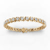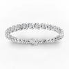 This exquisite bracelet features a mesmerizing pattern of round diamonds, each artfully set in a graceful, wave like design. The diamonds are secured by sleek prongs that maximize their brilliance, allowing light to dance through each facet. The elegant arrangement creates a fluid, continuous line of sparkle that gracefully adorns the wrist. The secure clasp ensures a seamless fit, blending effortlessly with the bracelet's sophisticated style. This piece is a perfect blend of modern artistry and timeless elegance, making it a stunning addition to any jewelry collection.