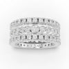 The center diamond is secured using a prong setting that stabilizes the stone while allowing exposure across the crown and pavilion for controlled light interaction.