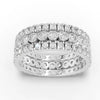 A total of ninety-six round lab-grown accent diamonds are incorporated throughout the bridal set. The accent stones are arranged along the band and surrounding structure in a continuous layout, with measured spacing applied to maintain alignment and structural consistency. The multi-diamond configuration distributes carat weight evenly across the ring while preserving a controlled profile and consistent band width.