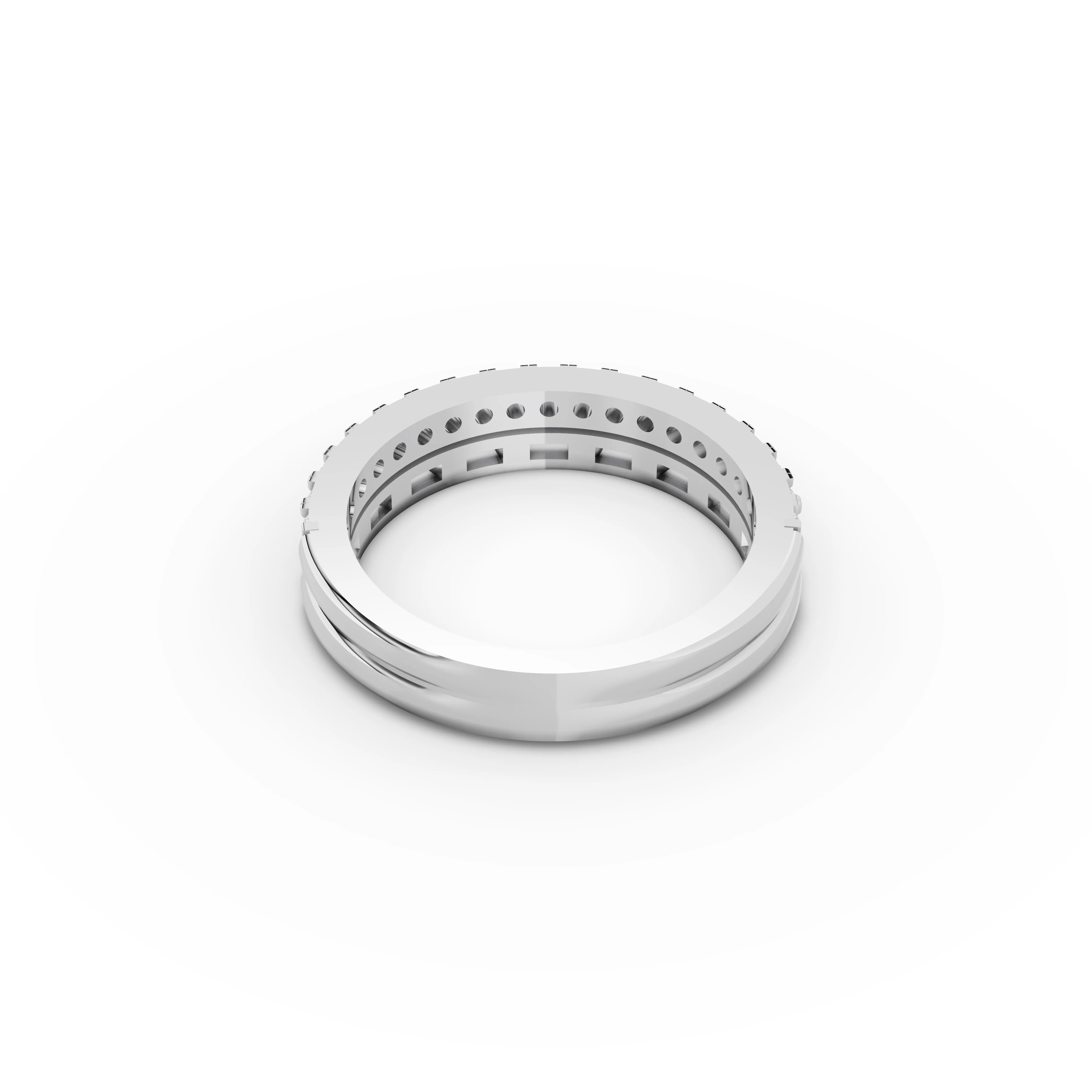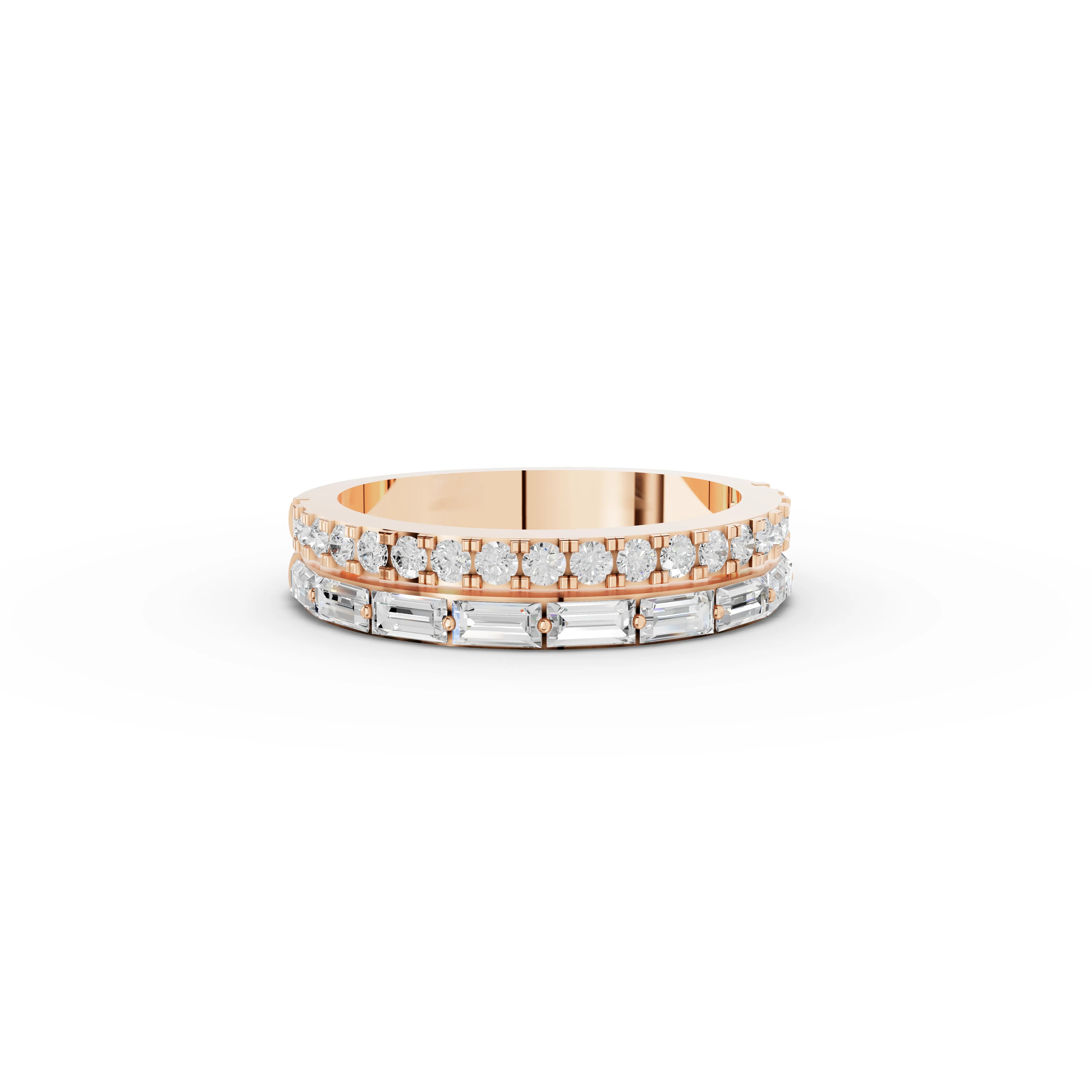 This elegant wedding band combines the timeless sparkle of round diamonds with the sleek sophistication of baguette diamonds. Expertly crafted for durability and brilliance, it provides a refined, graceful accent to any engagement ring or stands beautifully on its own. Perfect for those seeking a classic yet distinctive symbol of commitment.