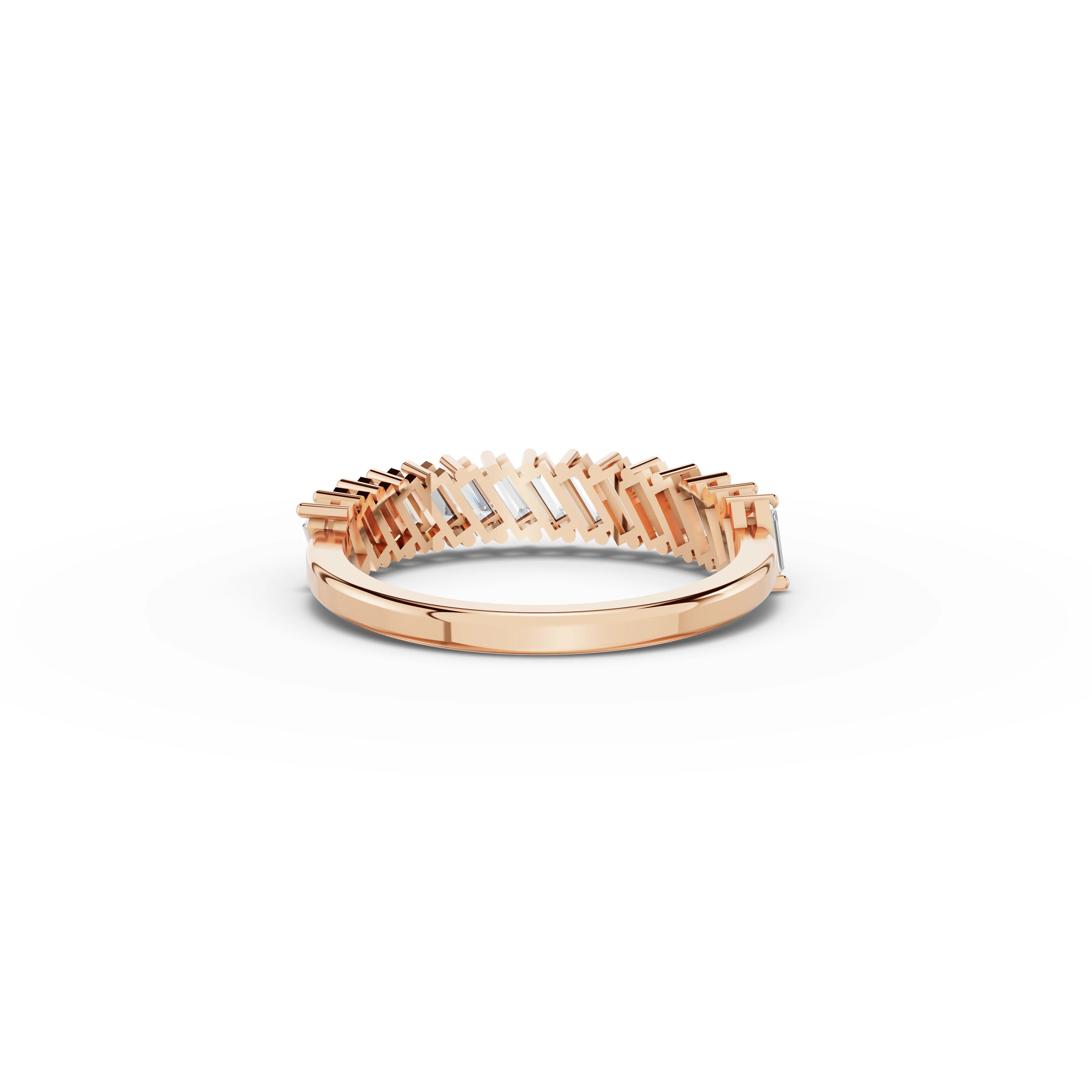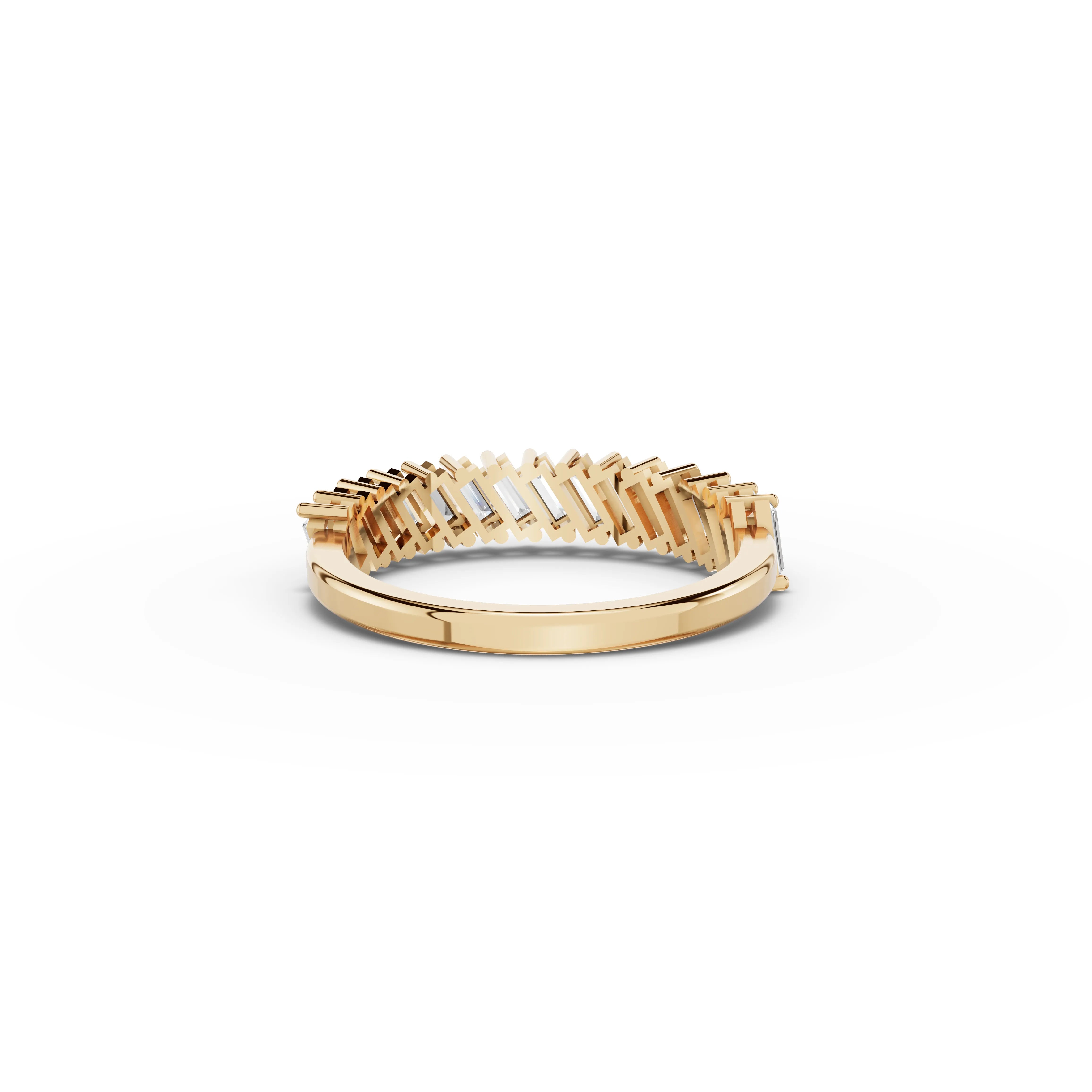 This baguette cut lab grown diamond eternity band features precision-cut stones set in a continuous circle, symbolizing everlasting elegance. Crafted with ethically sourced lab grown diamonds, it offers brilliant sparkle and sustainable luxury. The sleek design complements any style, making it an expert choice for timeless sophistication and responsible craftsmanship.