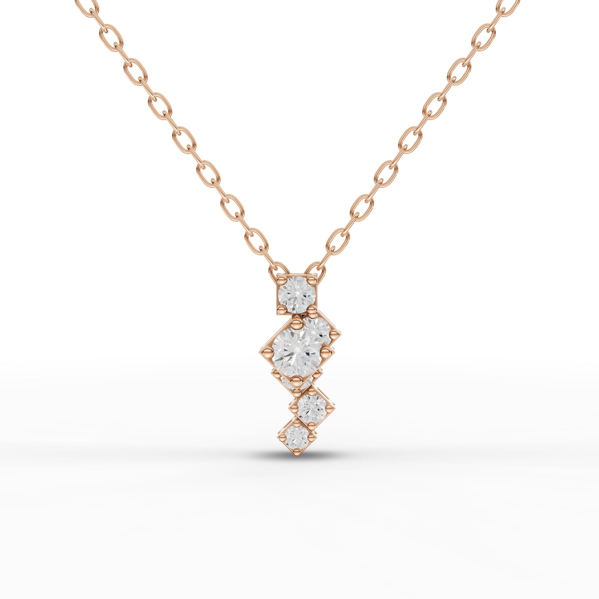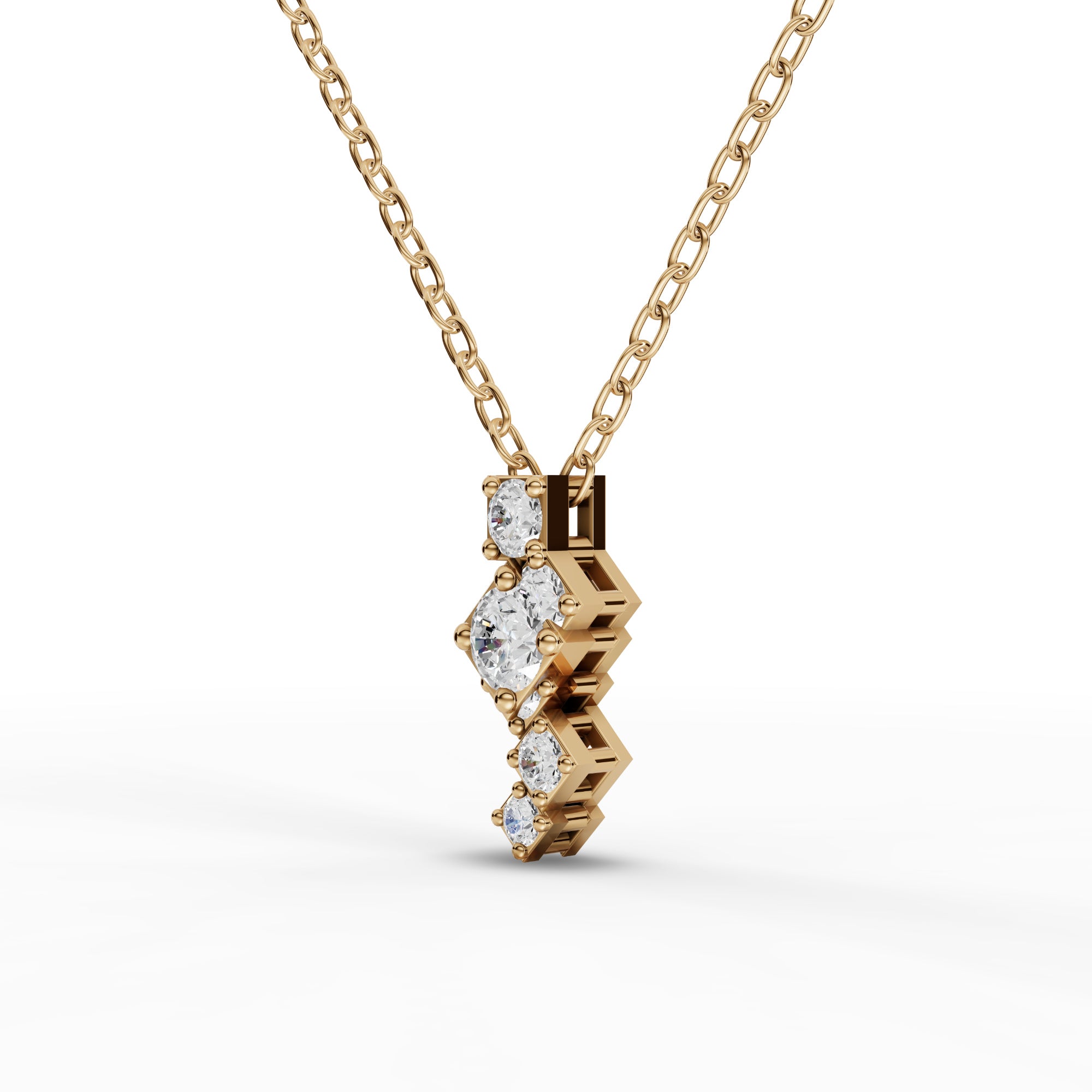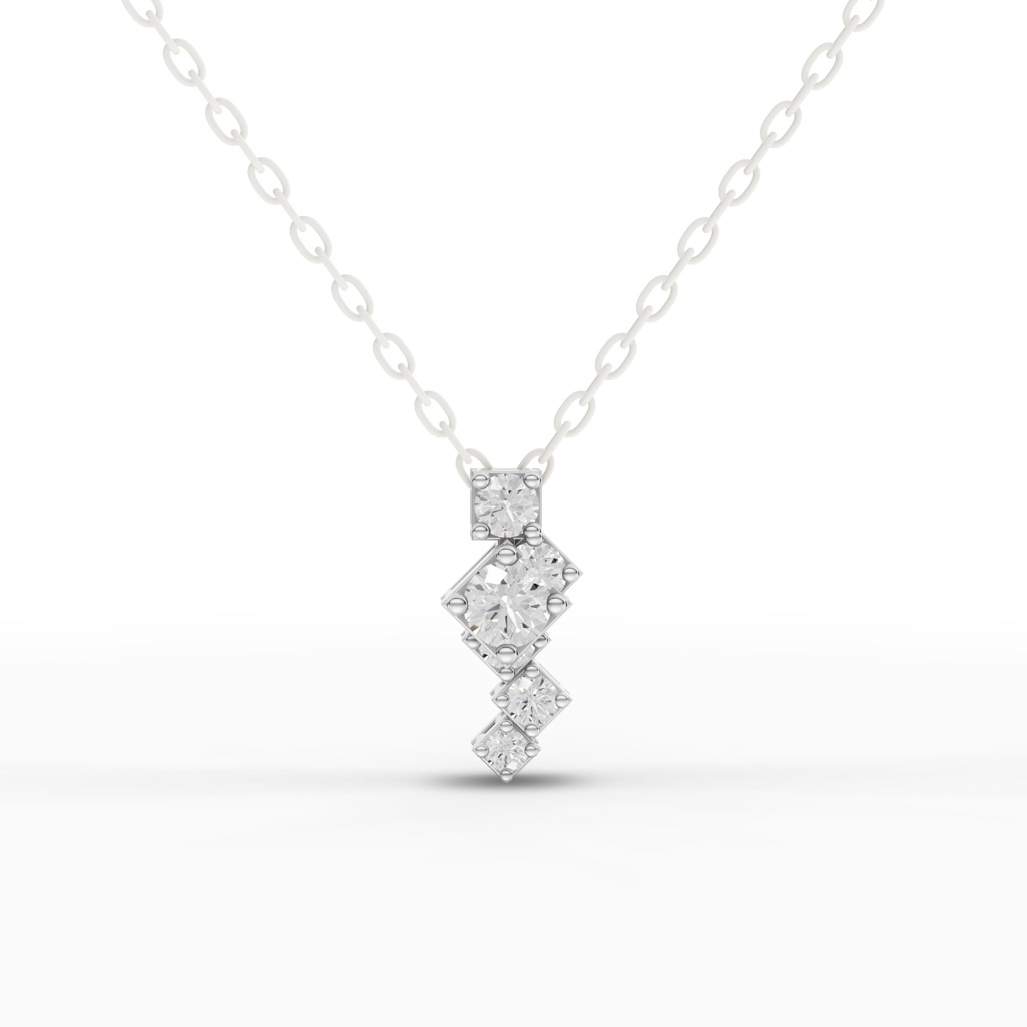 Lab-grown diamonds offer exceptional brilliance with complete transparency about their origin. This geometric necklace features stacked square elements that create striking visual depth, suspended from a refined chain for versatile styling. The modern architectural design complements both contemporary and classic wardrobes, while the lab-grown diamond ensures ethical sourcing without compromising on quality or sparkle. A sophisticated choice for those seeking distinctive elegance with conscious values.