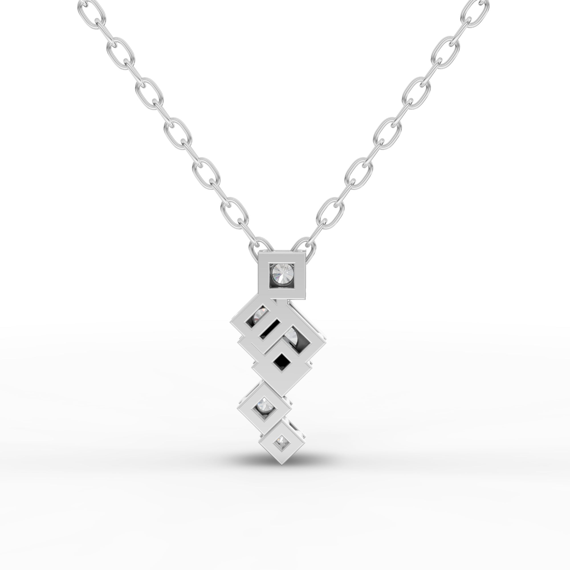Lab-Grown Diamond Stacked Square Geometric Drop Necklace