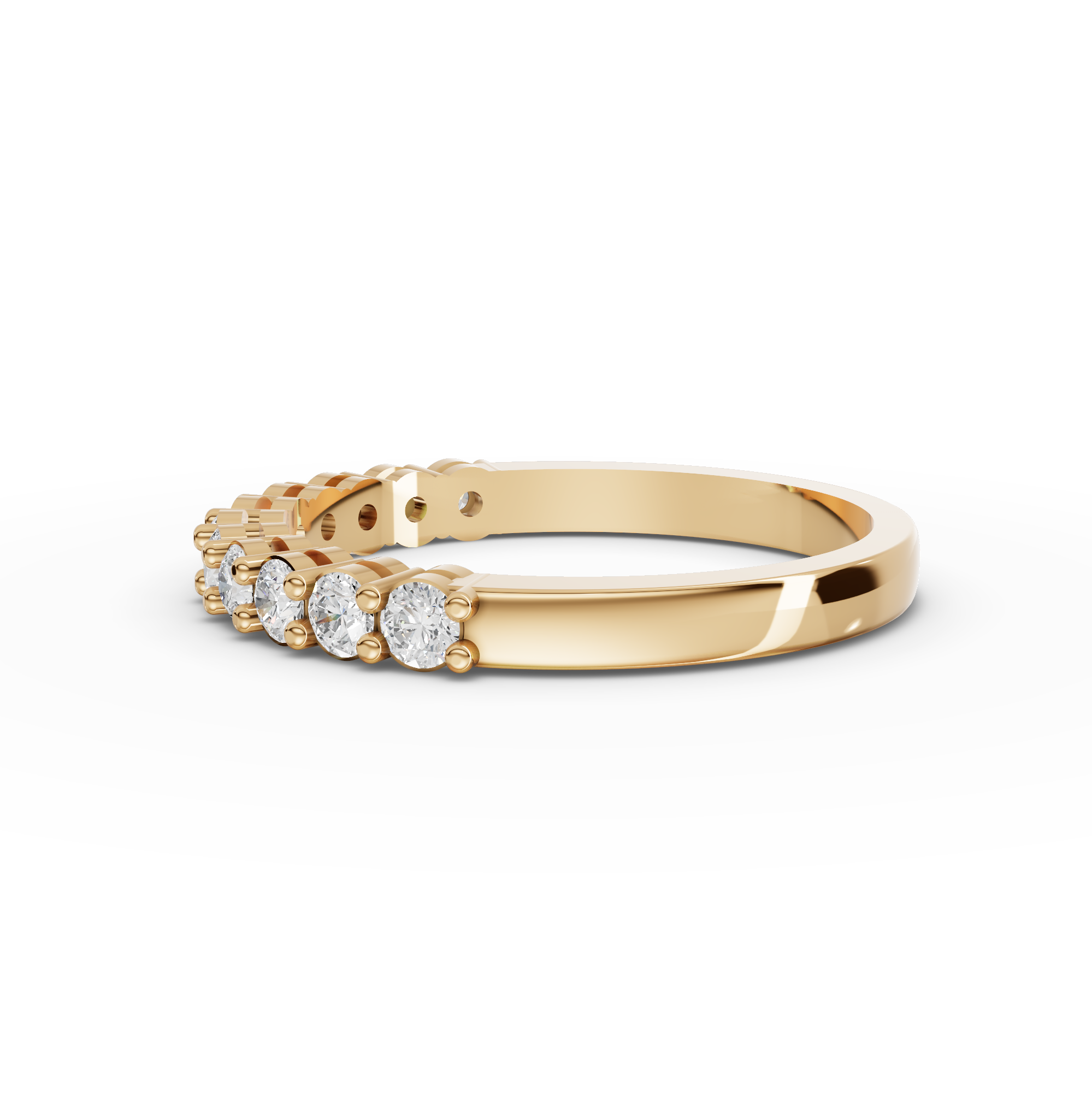 Celebrate your love with this elegant half eternity wedding band featuring a stunning 0.47 ct round lab diamond. Crafted with precision, the shared prong setting showcases brilliant sparkle while maintaining a sleek, timeless design perfect for stacking or wearing solo. Lab-grown diamonds offer exceptional quality and ethical sourcing without compromise on beauty or durability. This ring combines modern sophistication with classic elegance, making it an ideal choice for engagements, anniversaries, or milestone moments. Each stone is carefully selected to ensure maximum brilliance and fire. The secure prong setting protects your diamond while allowing light to dance through every facet. A versatile piece that complements any style and stands the test of time.