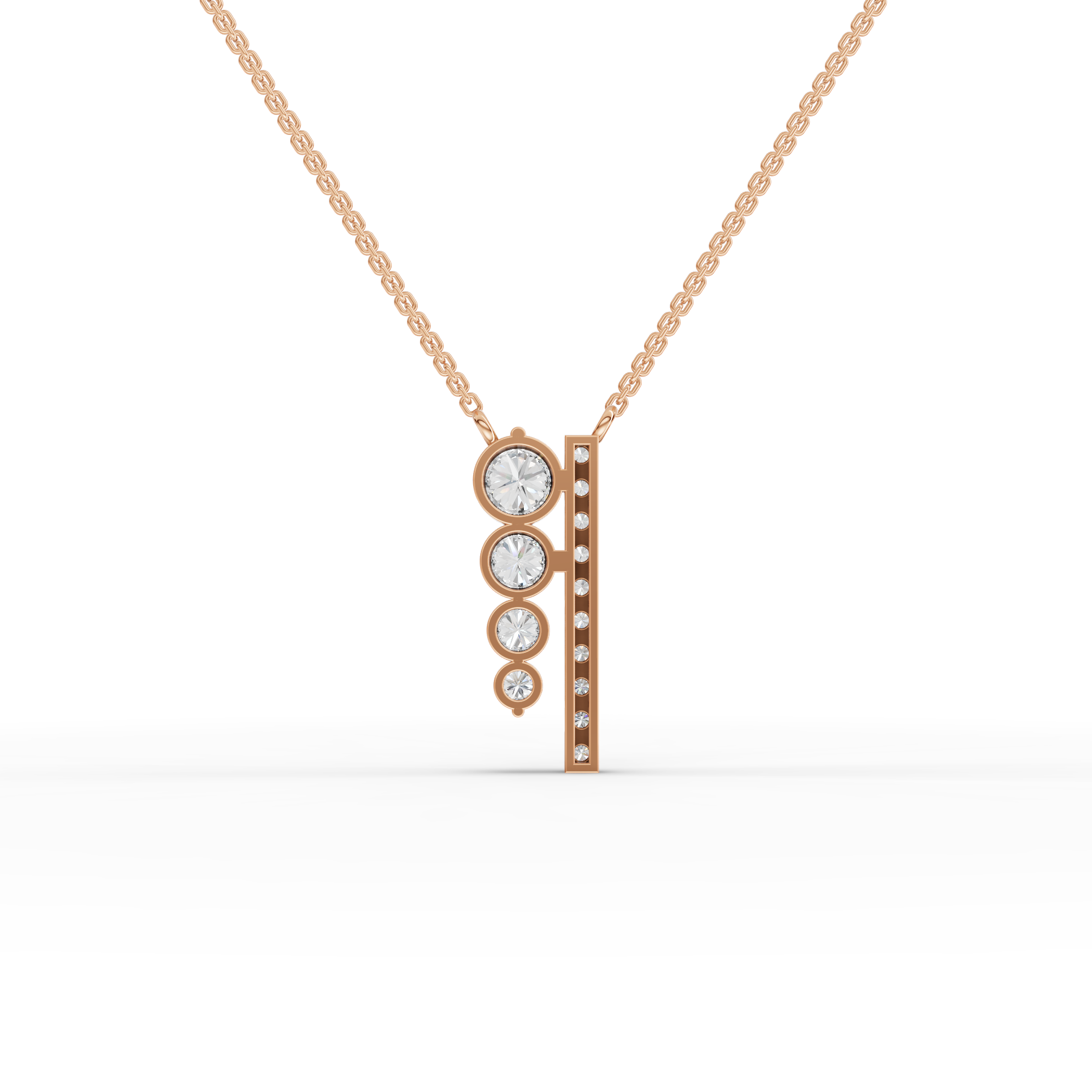 The pendant necklace showcases 14 round lab-grown diamonds with a combined approximate weight of 2.21 carats, arranged in a graduated bezel design that creates elegant movement and refined vertical balance.