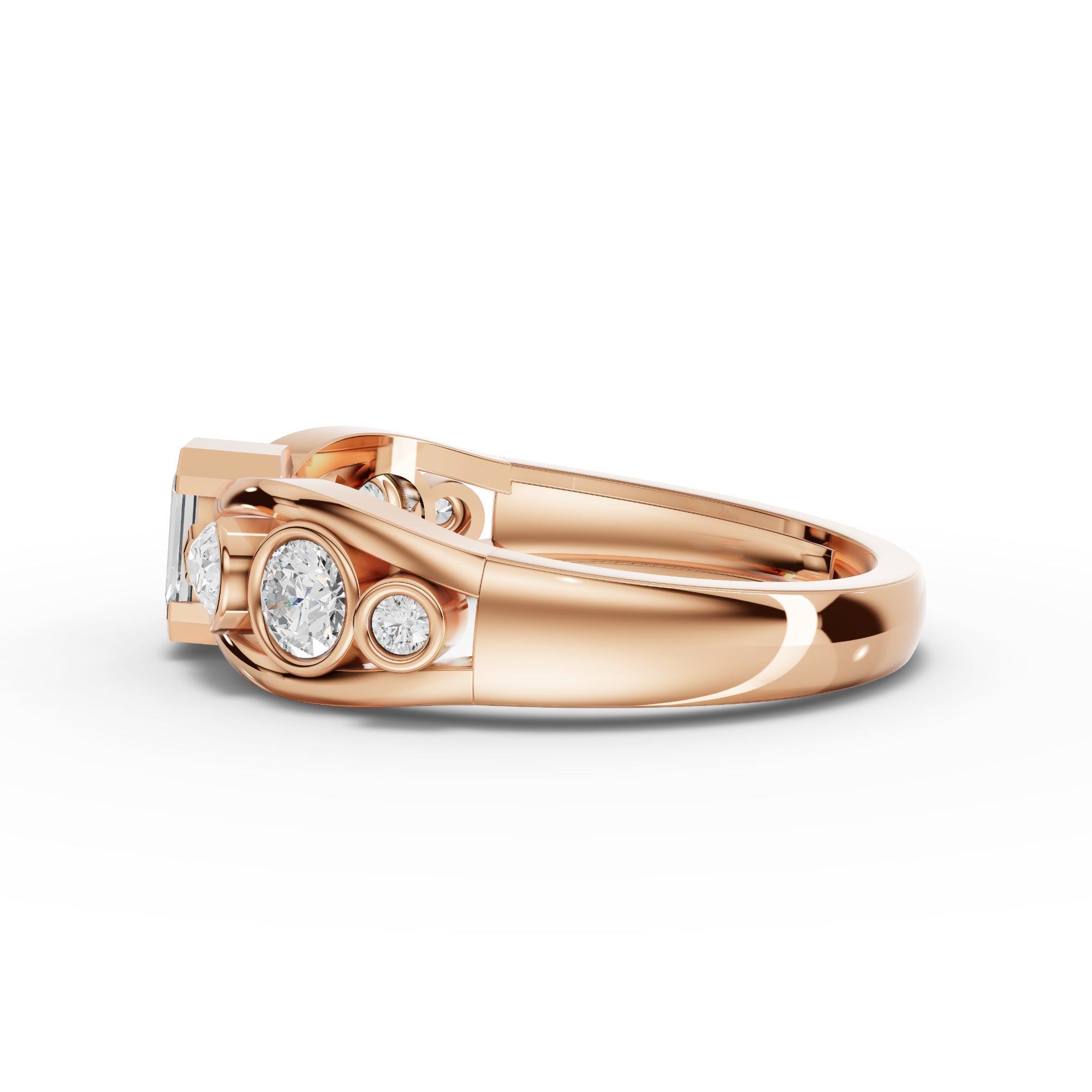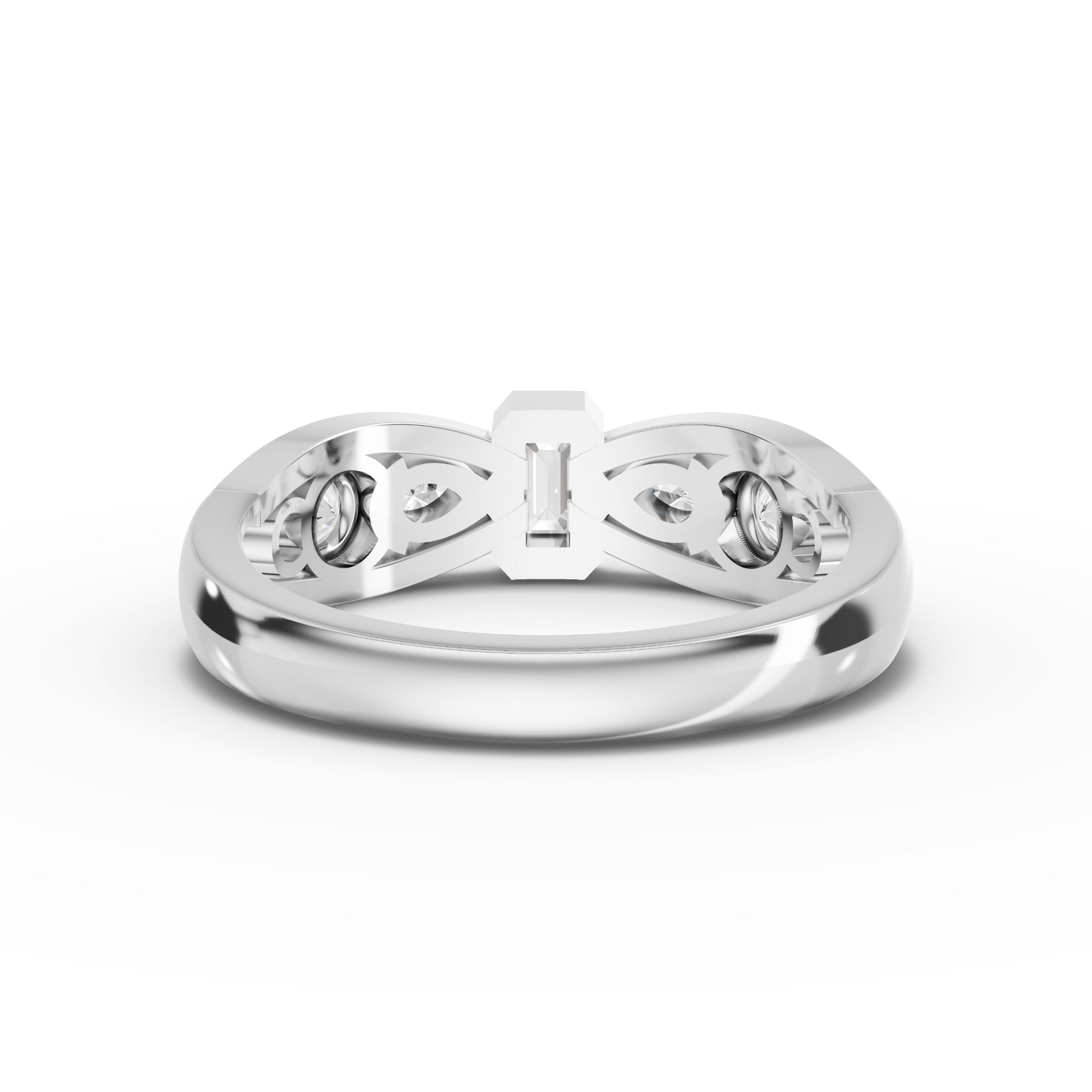 Completing the set, the emerald-cut accent ring showcases a single emerald-cut lab-grown diamond weighing approximately 0.26 ct, complemented by two pear-shaped diamonds totaling approximately 0.19 ct and four round accent diamonds totaling approximately 0.23 ct, forming a sculptural band design with refined sparkle and modern symmetry.